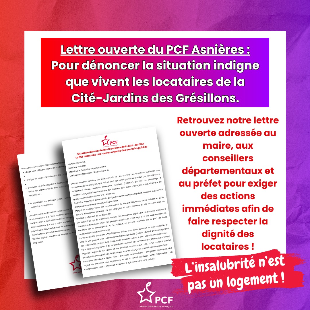 Asnières ne doit pas être une ville réservée à une caste sociale. C’est le message fort porté par le PCF, qui dénonce une gestion municipale qui exclut et divise. Pour le PCF, il est temps de mettre en place une politique du logement qui permette à toutes et à tous de vivre dignement dans la ville.